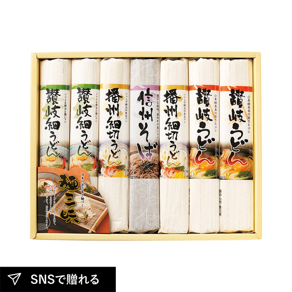 讃岐の力強いコシ、播州の繊細なのど越し、信州そばの豊かな風味を一度に味わえる、麺好きにはたまらない詰め合わせ。産地ごとの個性を食べ比べでき、贈り物としても喜ばれる、満足度の高いセットです。