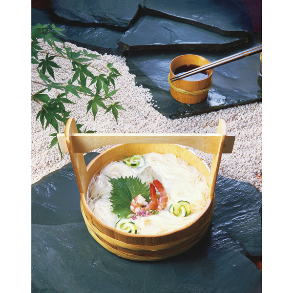 揖保乃糸のそうめんと、風味豊かなつゆをセットにしました。良質な小麦粉、播磨地方の美味しい水、赤穂の塩を使用し、伝統の製法で丁寧に作り上げたそうめんは、上品な舌触りとのど越しが特徴です。つゆは、醤油のコクと旨味を生かし、かつおと昆布の風味を大切に仕上げたバランスの良い味わい。暑い季節や贈り物にもぴったりの一品です。