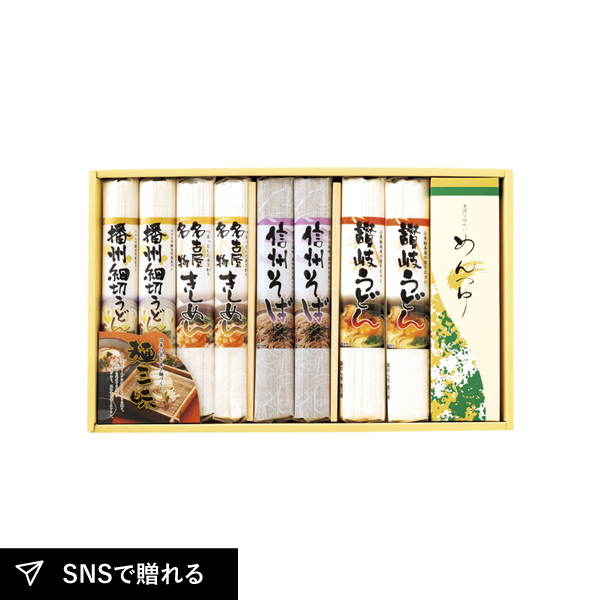| 讃岐うどん180g・信州そば120g・名古屋名物きしめん150g・播州細切うどん150g×各2、めんつゆ25g×6 |