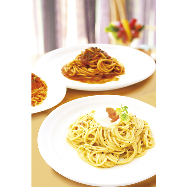 | スパゲティ130g×2、マカロニ(コンキリエ)70g・自然色パスタ(ファルファーレ)40g・パスタソース(ナポリタン2人前・カルボナーラ2人前)250g×各1 |
