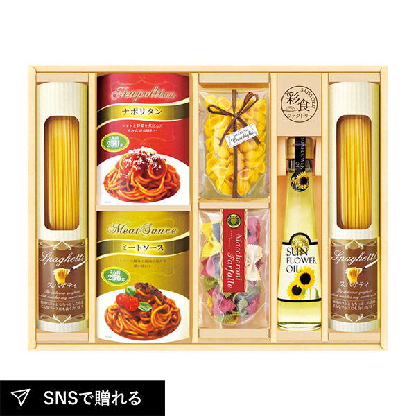 彩食ファクトリーの日本製パスタを中心に、ナポリタンとミートソース、ひまわり油まで揃えたパスタギフト。素材の旨みを生かした味わいで、食卓に豊かな時間を演出します。感謝の想いを伝える内祝いとしても選ばれるグルメギフトです。