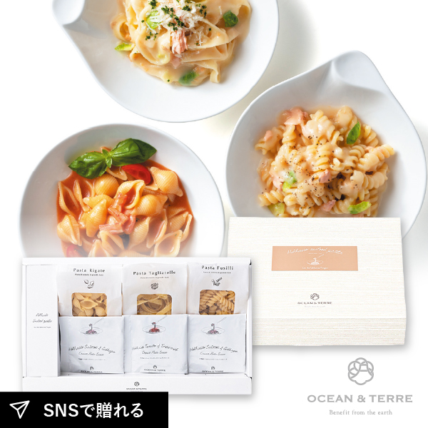 その美味しさはまるでイタリアのトラットリアで食べているような錯覚。そんな贅沢な時間をお楽しみいただける、食材にこだわった贅沢なパスタのギフトです。「北海道産サケとキャベツクリームパスタソース」「北海道産トマトとズワイガニクリームパスタソース」と2種のパスタ。サケがアクセントの濃厚クリームソースと、蟹の風味豊かなトマトソースパスタのパスタの食べ比べをお楽しみください。2種のパスタは、それぞれの歯ごたえをご堪能ください。