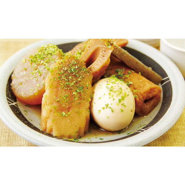 | 焼津おでん(360g)(大根・卵・黒はんぺん・なると巻・ごぼう巻・煮込みちくわ・こんにゃく)×5、だし粉×5 |