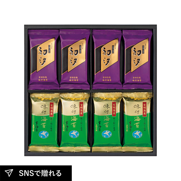 | 味付海苔(8切6枚)・あごだし味付海苔(8切5枚)×各12 |
