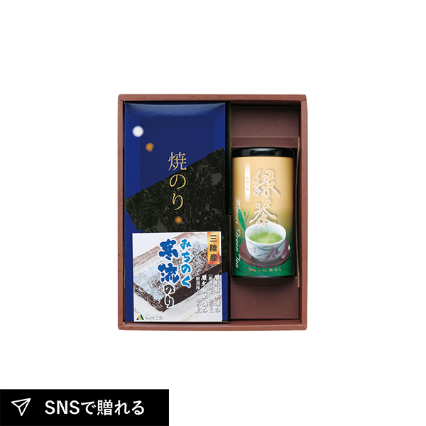 | 焼のり半切5枚(三陸産)×4、上煎茶100g(鹿児島茶)×1 |