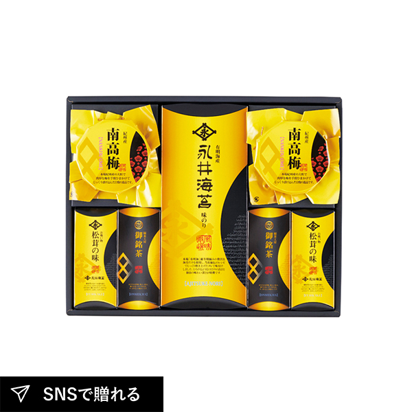 | 永井海苔 味付海苔(8切6枚×2)×1、永井海苔 お吸い物(松茸風味)(3.3g×2)・紀州南高梅100g・深蒸し茶40g×各2 |