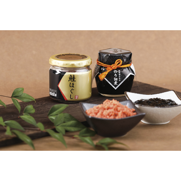 | 鮭ほぐし50g・のり佃煮80g・紅ずわいがにほぐし身55g×各2、かつおだし(4g×8)×4 |
