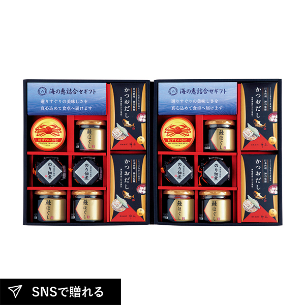 | 鮭ほぐし50g×6、のり佃煮80g・かつおだし(4g×8)×各4、紅ずわいがにほぐし身55g×2 |