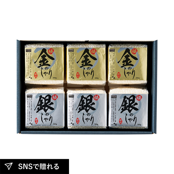 金のしゃり:8分づき米 玄米の糖層と胚芽の部分を8割程度剥離した精米で、胚芽の栄養が一部残っており、美容と健康に良いといわれています。銀のしゃり:玄米を100%精米しました。消化吸収が良く、お米の甘みやもっちりとした味わいを楽しめます。