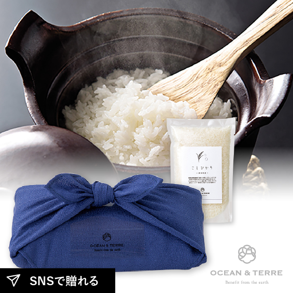 おもてなしの心で包んだ、日本人の体に深く染み渡る瑞穂の恵みの豊かで繊細な優しい風味。「新潟県産 こしひかり」は、高品質と安全・安心を約束する新潟米の代表格。新潟こしひかりの特徴は、こしひかりが持つ独特の甘みと粘りだけでなく、炊き上がったときの香りとツヤにあります。 新潟県は、信濃川や阿賀野川などの河川により稲作に必要な水が十分に確保することができ、稲作に適した土地や天候に恵まれていることから、ほかのこしひかりと比べ粘りと甘みが強いです。美しい風呂敷で包まれた美味しいお米は、縁起物としてぴったりの格調高い贈り物になります。