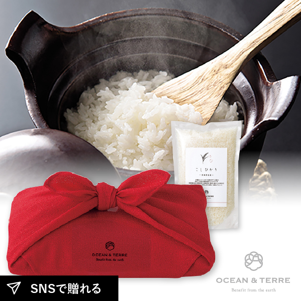 おもてなしの心で包んだ、日本人の体に深く染み渡る瑞穂の恵みの豊かで繊細な優しい風味。人気が高い「京都丹後産 こしひかり」の特徴はなんといっても強い旨みともっちり感です。京都米こしひかりは、そのバランスがとても良く、和食から洋食、中華と幅広いおかずと相性の良いブランド米です。美しい風呂敷で包まれた美味しいお米は、縁起物としてぴったりの格調高い贈り物になります。