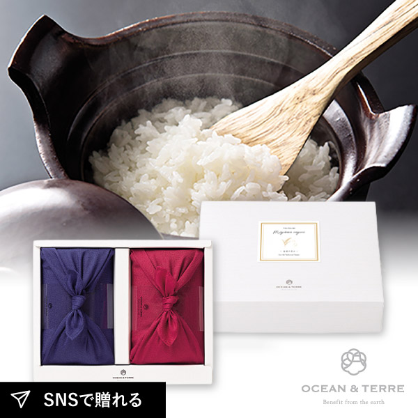 おもてなしの心で包んだ、日本人の体に深く染み渡る瑞穂の恵みの豊かで繊細な優しい風味。「新潟県産 こしひかり」「北海道産 ゆめぴりか」風土の豊かさを感じる2つの味を楽しむお米のギフトです。美しい風呂敷で包まれた美味しいお米は格調高く、目上の方への贈り物にもおすすめです。