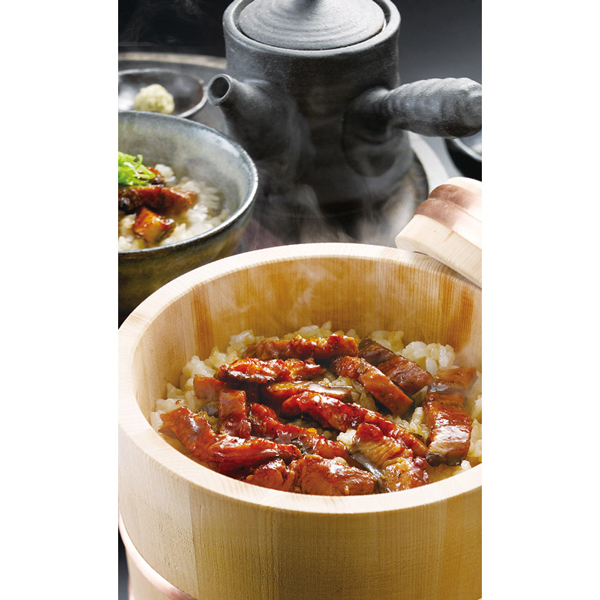 | 鰻きざみ(45g)・吸い地(ダシ)(120g)・タレ・山椒・おろしわさび(2g)・きざみのり(0.5g)×各3 |