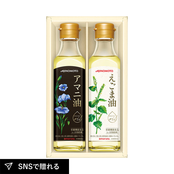 健康素材として注目の“オメガ3系脂肪酸”を豊富に含む、えごま油とアマニ油を組み合わせた健康オイルギフトです。健康を気遣う方にぴったりな話題の贈り物です。
