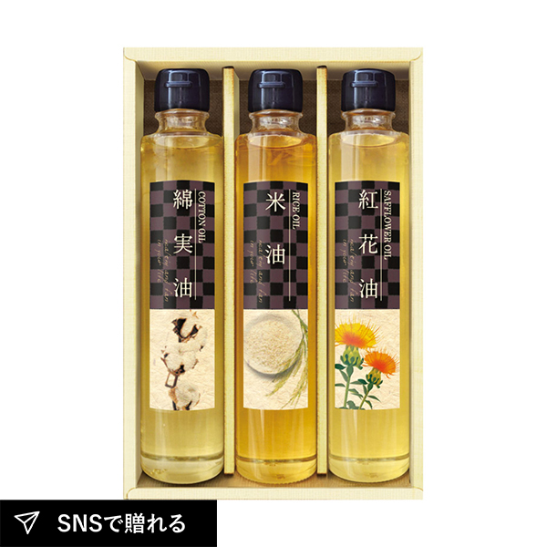 | 綿実油(165g)・米油(165g)・紅花油(165g)×各1 |