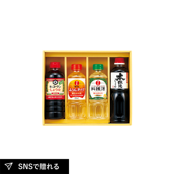 キッコーマンの人気調味料を厳選した嬉しい詰合せ。おうちごはんやお茶の時間に彩りと風味を添え、贈る相手の笑顔と心温まる特別なひとときを演出するギフトです。