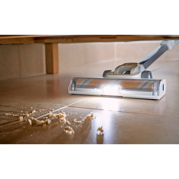 パワフルな14.4Vリチウムバッテリーを採用した2in1スティッククリーナー。スティック使用時は、床材に合わせて自動で吸引モードを切り替えるフロアセンサーとLEDライトで、効率よく掃除ができます。ハンディ使用時は、隙間ノズルやブラシノズルで細部までスッキリ。ダストケースは水洗いでき、お手入れも簡単です。