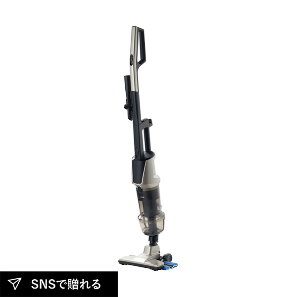 吸引と拭き掃除を同時にこなせるワイパー付きクリーナー。高速遠心分離サイクロンで吸込力が長く続き、紙パック不要で経済的です。ハンディ・スティックのどちらでも手元操作ができ、使い勝手も抜群。