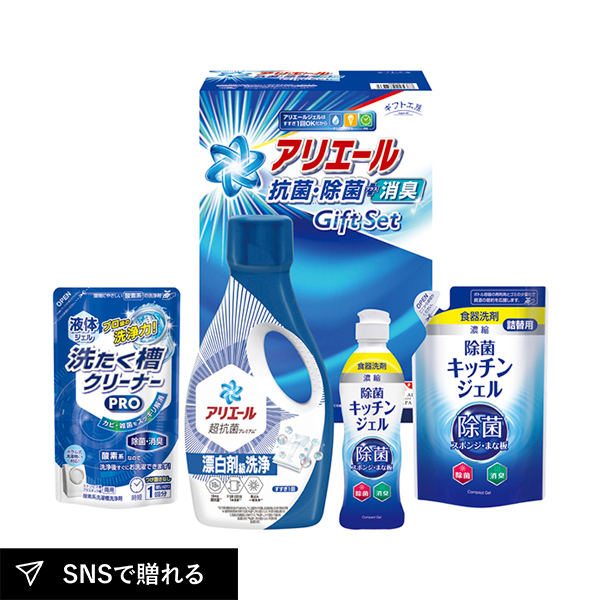 | P&Gアリエールジェル700g・除菌キッチンジェル200ml・除菌キッチンジェル(詰替)160ml・液体洗たく槽クリーナーPRO200g×各1 |