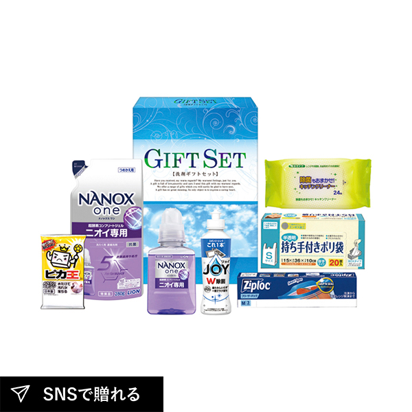 「ナノ洗浄バラエティ洗剤セット」は、ライオンナノックスの洗剤を詰め合わせたギフト。ナノレベルで汚れを分解・除去し、衣類や日常の清潔をサポートします。快適で清潔な生活を贈る実用的な洗剤セットです。