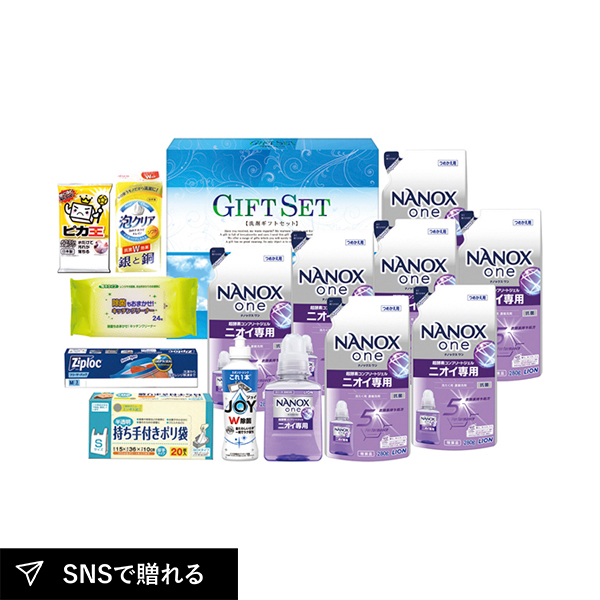 「ナノ洗浄バラエティ洗剤セット」は、ライオンナノックスの洗剤を詰め合わせたギフト。ナノレベルで汚れを分解・除去し、衣類や日常の清潔をサポートします。快適で清潔な生活を贈る実用的な洗剤セットです。