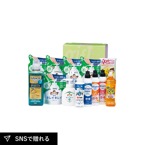 | ライオンキレイキレイ薬用液体ハンドソープ(詰替用)200ml×5、ライオンNANOX one PRO(本体)600g・P&G除菌ジョイコンパクト170ml・ライオンCHARMY Magica除菌+220ml・ライオンCHARMY Magica酵素+オレンジの香り220ml・ライオンCHARMY Magica酵素+フレッシュピーチの香り220ml・オレンジマイルドコンパクト270ml・ライオンキレイキレイ薬用液体ハンドソープ(本体)250ml・ネットスポンジ1P×各1 |