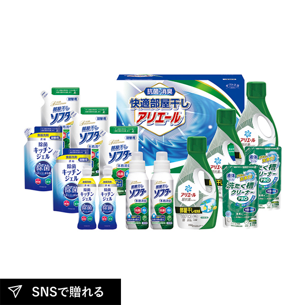 | P&Gアリエールジェル部屋干し超消臭700g・抗菌部屋干しソフター(詰替)300g×各3、除菌キッチンジェル200ml・除菌キッチンジェル(詰替)160ml・抗菌部屋干しソフター300g・液体洗たく槽クリーナーPRO200g×各2 |