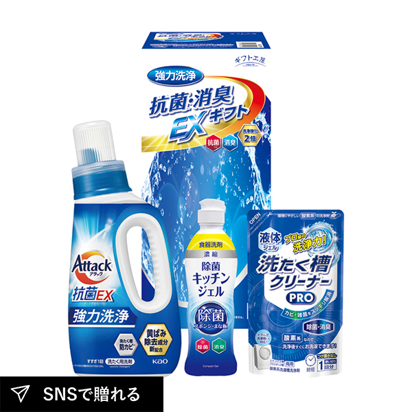 | 花王アタック抗菌EX750g・除菌キッチンジェル200ml・液体洗たく槽クリーナーPRO200g×各1 |