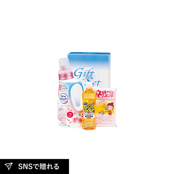 | 花王ニュービーズローズ&マグノリアの香り(本体)690g・オレンジマイルドコンパクト270ml・ネットスポンジ1P×各1 |
