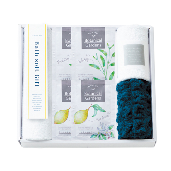 気分によって使い分けられるバスソルト、ウォッシュタオルやマイクロファイバークロスを詰め合わせました。いそがしい毎日のココロとカラダをリセット。バスタイムが待ち遠しくなるもらってうれしいギフトです。
