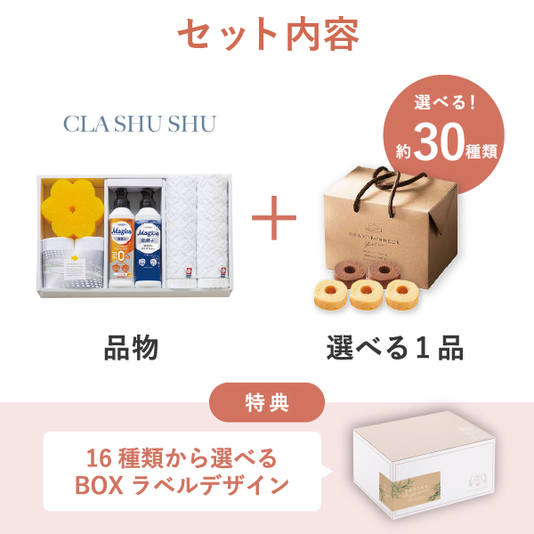 届いた瞬間からワクワクするおしゃれなラベル付きギフトボックスが選べる便利なギフトセット。 結婚内祝い、出産内祝いをはじめ、新築祝いや退職祝いなどの様々なギフトシーンでご利用いただけます。