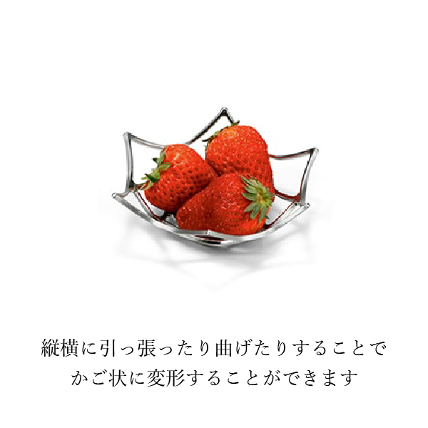 形を変えて、フルーツトレイやお菓子入れなど、多目的にアレンジして楽しめるのが魅力です。陶器やガラスの器と重ねて使うことで、より洗練された演出も可能です。