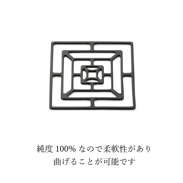 一般的な錫製品には、強度を高めるために他の金属が加えられることが多いですが、能作のKAGOは一切の混合を行わず、100%の純錫でつくられています。そのため、手で自由に曲げたり、引き伸ばしたりできるほどの高い柔軟性があります。