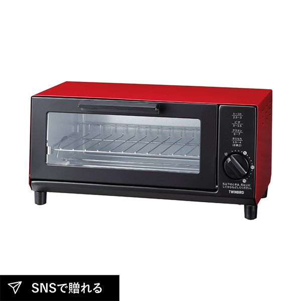 鮮やかなレッドカラーのツインバードオーブントースター。見た目も楽しいキッチン家電で、トーストやグリル料理を簡単に調理できます。忙しい日常を快適にサポートし、スタイリッシュで実用的、贈る方に喜ばれるギフトです。