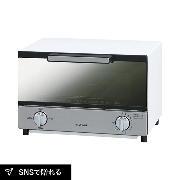 ミラーガラス調で、キッチンやお部屋に馴染むインテリア性の高いデザイントースターです。火力は4段階(220/500/720/1000W)に切り替え可能で、用途に合わせて調整できます。
