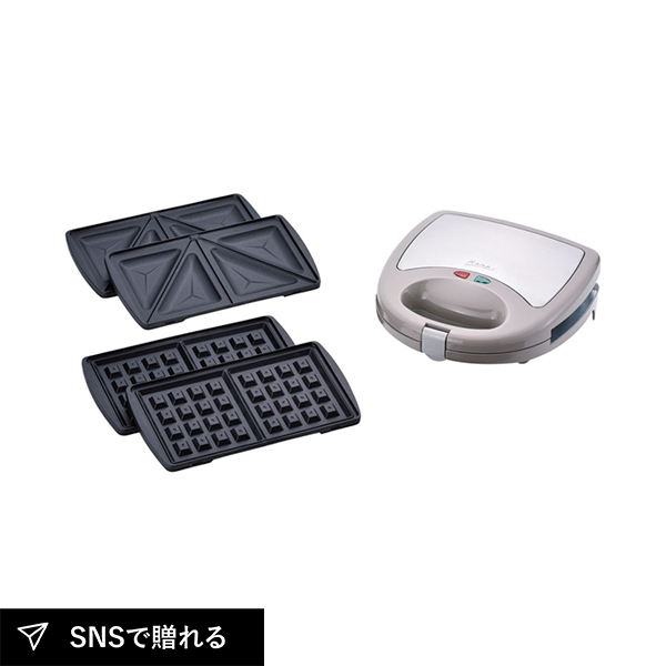 キッチンに溶け込む落ち着いたカラーのホットサンドメーカー。ホットサンドとワッフルのプレート付きです。おやつやランチに出来立てのホットサンドとワッフルをお楽しみください。