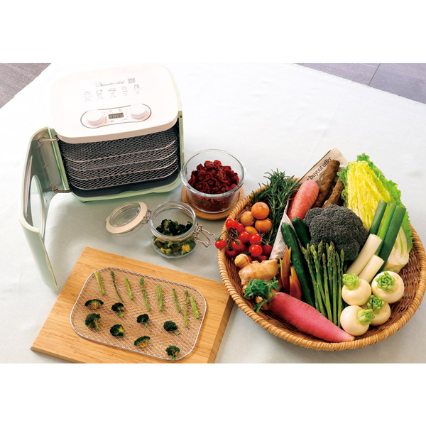 自家製のドライフルーツや乾燥野菜が気軽に作れ、時間帯を気にせず使用できます。発酵モード搭載でヨーグルトも作れます。フードロス削減にも!●乾燥温度:30℃〜80℃●タイマー:1時間〜99時間。