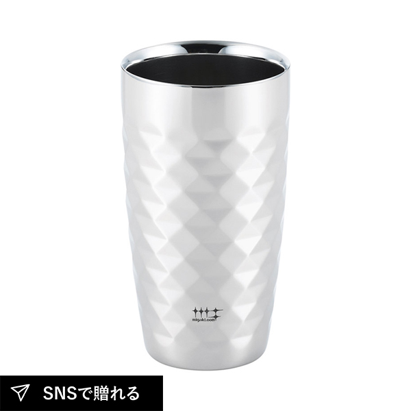 高級感のあるダイヤモンドカット仕上げのタンブラーが、いつものお酒を格段の味わいにしてくれます。二重構造で保冷・保温に優れているため、ゆっくりとお酒を楽しみたい方にもおすすめです。ウイスキーや焼酎のロック、お湯割り等でもお楽しみいただけます。