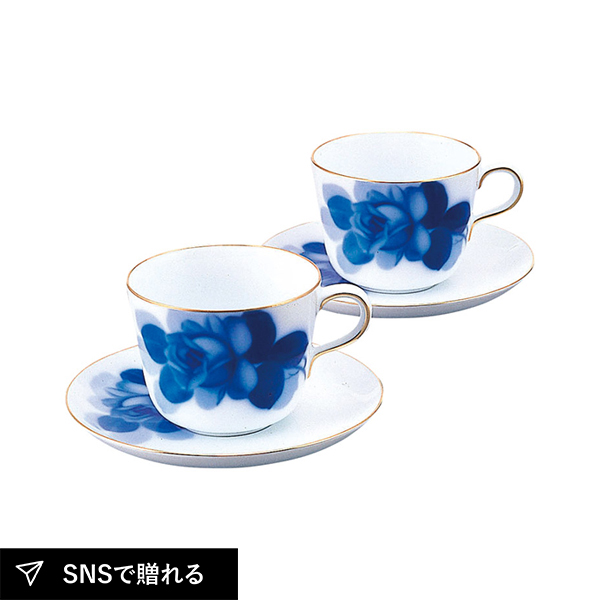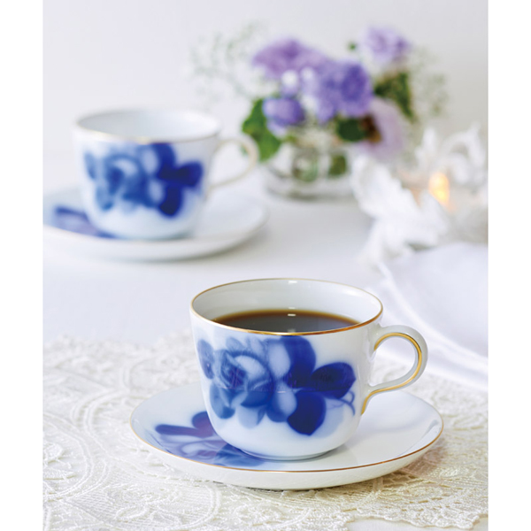 大倉陶園 ブルーローズ モーニング碗皿ペアセット