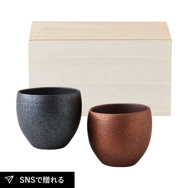 職人による手仕事で重厚な金属の輝きを陶器にうつしたシックなデザインのロックカップ。350mlでしっかり入るので普段使いしやすいアイテムです。高級感のある木箱に入れて大切にお届けします。お世話になった方へのプレゼントにもおすすめです。
