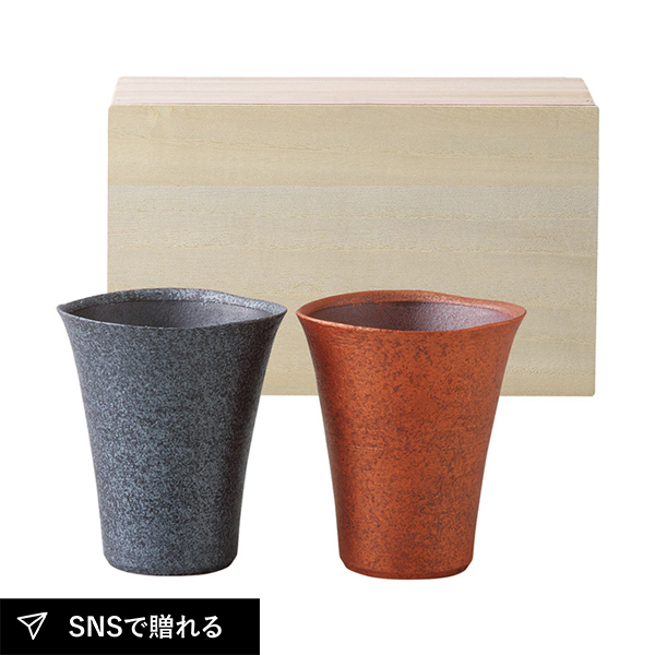 職人による手仕事で重厚な金属の輝きを陶器にうつしたシックなデザインのロックカップ。350mlでしっかり入るので普段使いしやすいアイテムです。高級感のある木箱に入れて大切にお届けします。お世話になった方へのプレゼントにもおすすめです。