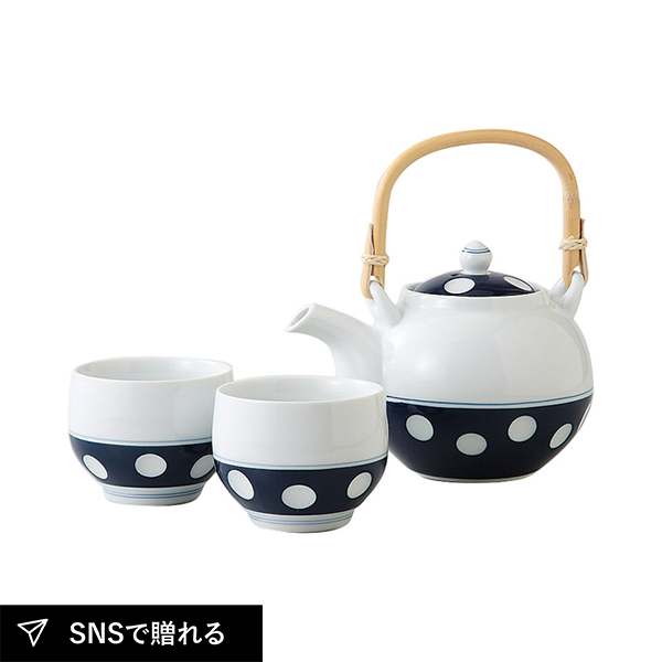 懐かしさを感じる大きな水玉模様がレトロでかわいい急須と湯呑のセット。昔から続く日本の伝統を感じるデザインながら、現代の暮らしでもなじむように作られています。食洗機や電子レンジが使えるので、普段使いしやすいアイテムです。