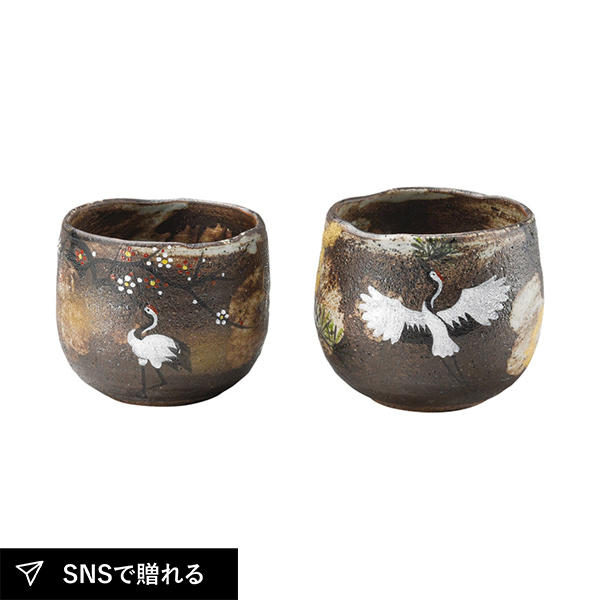 渋みを感じる色合いと縁起の良い鶴が特徴的な組湯呑です。縁起が良いとされている吉祥柄は、長寿慶福を願うギフトに最適。2組セットなので、ご夫婦で使うのにもぴったりです。ご年配の方へのプレゼントにもおすすめ。