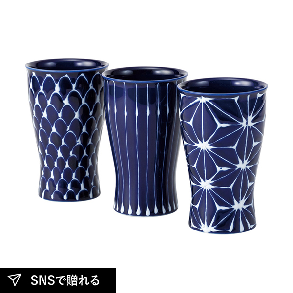 切子グラスを想像させる綺麗な瑠璃色のフリーカップセット。持ち易く、お茶やお酒類などを楽しむのに最適な形状とサイズ感です。手仕事により焼き上げられた、伝統を感じる高品質なカップ。贈り物にぴったりなアイテムです。