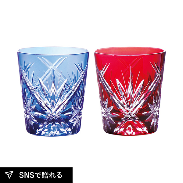 クリアなボディーに色ガラスを被せてカットを施した高級感のあるグラス。独特な風合いが、贅沢な時を演出します。気品を感じる青と赤のペアグラスは、両親や上司ご夫婦など目上の方へのお祝いやプレゼントにもおすすめです。
