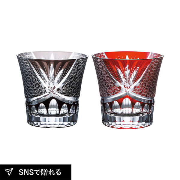 クリアなボディーに色ガラスを被せてカットを施した高級感のあるグラス。独特な風合いが、贅沢な時を演出します。気品を感じるデザインのペアグラスは、両親や上司ご夫婦など目上の方へのお祝いやプレゼントにもおすすめです。