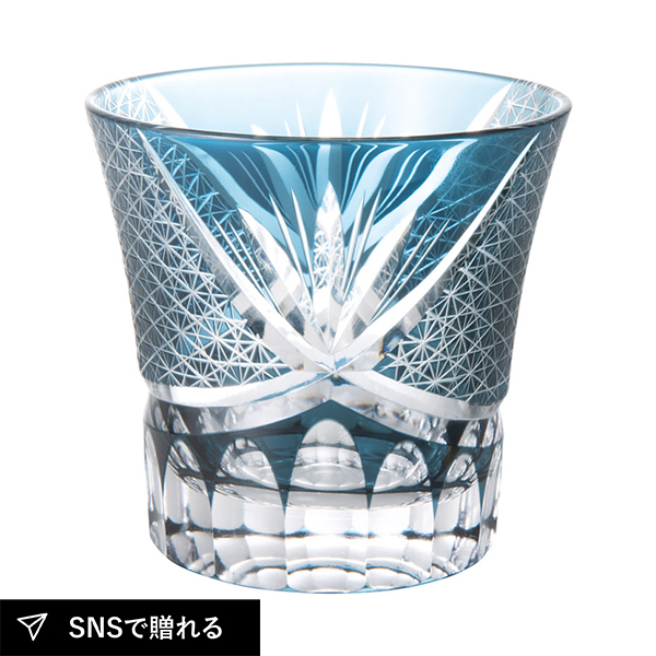 少し厚みのある色ガラスに、丁寧にいくつものカットを重ねて生まれる美しい模様の切子グラス。カットに映った光が屈折し、1本1本の線が放つ美しい輝きをお楽しみいただけます。カットの凹凸を手で触れて、手作りの温かみを感じることができるグラスです。