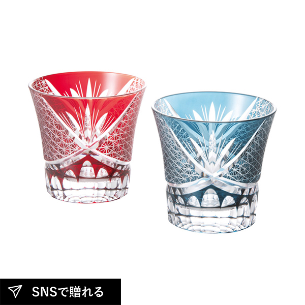 少し厚みのある色ガラスに、丁寧にいくつものカットを重ねて生まれる美しい模様の切子グラス。カットに映った光が屈折し、1本1本の線が放つ美しい輝きをお楽しみいただけます。カットの凹凸を手で触れて、手作りの温かみを感じることができるグラスです。