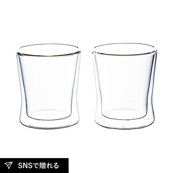 耐熱のガラスが二重構造に。熱い物を入れても、冷たい物を入れても持ったときに温度を感じにくく、ドリンクの温度変化もゆるやかです。ドリンクが浮いているように見えておしゃれな見た目。普段使いにも、来客にも重宝します。
