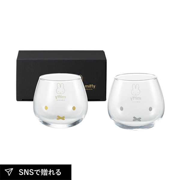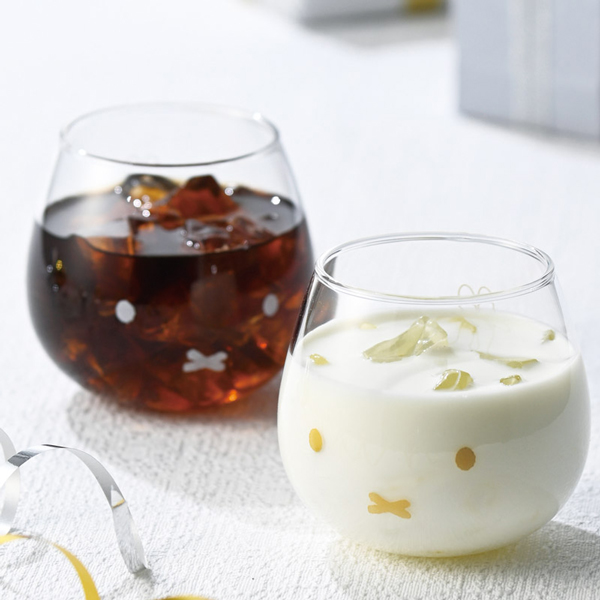 ミッフィーの顔をあしらったゆらゆらと揺れる丸いタンブラーのセットです。金銀を使って可愛く華やかなミッフィーをデザインしました。手になじむ丸い形はミッフィーの顔にぴったり。飲み物を入れると色づいて、より可愛いミッフィーが楽しめます。